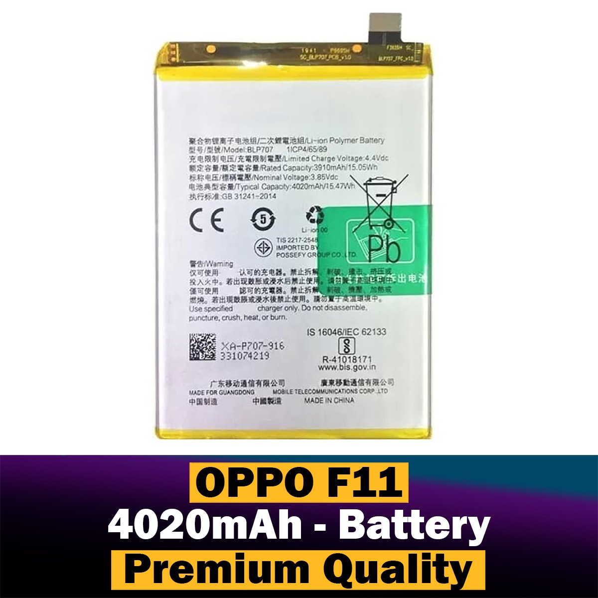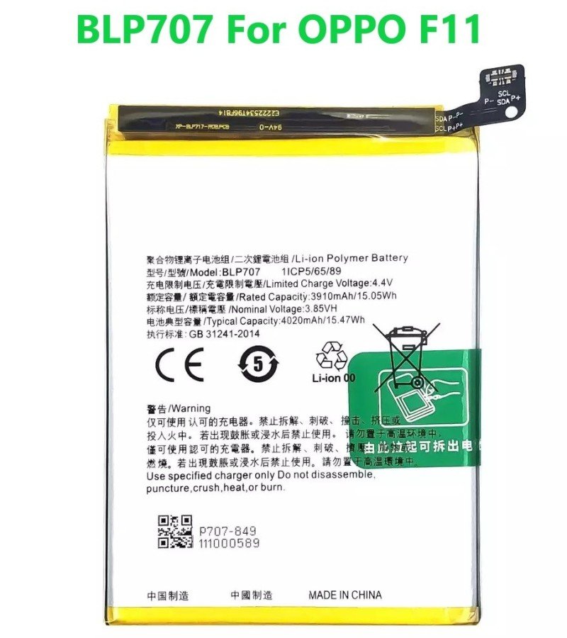 Oppo F11 Battery BLP707 Replacement Premium Quality 4020mah Battery For Oppo F11 2,099.00 Save:600.00(22%)